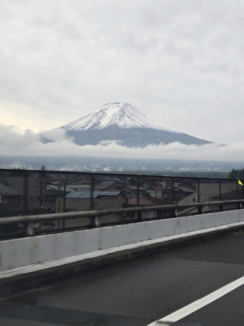 この日は曇り空ながら、道中では富士山がうっすら雪化粧。