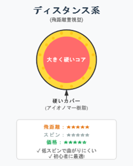 | ディスタンス系 | 高い | 低め | 標準〜硬め | 初心者・シニア | 安価 |